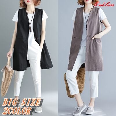 【 L 〜 XL 】 大きいサイズ レディース Vネック ルーズ 春 秋 ルーズ ベスト ジャケット ラージサイズ 婦人服 xl L 130
