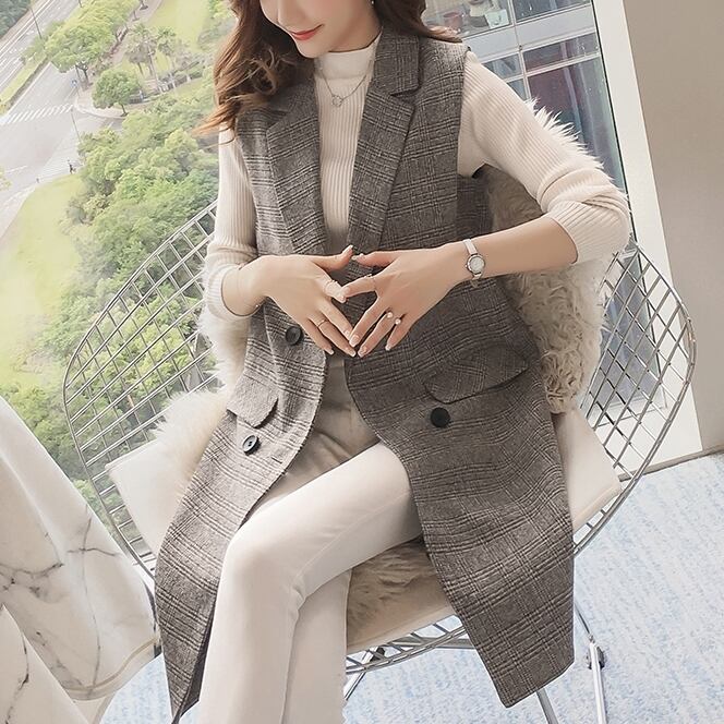 【 M 〜 3XL 】大きいサイズ レディース 春 スーツ ノースリーブ チェック柄 ベスト ジャケット 3l 2l xl 139