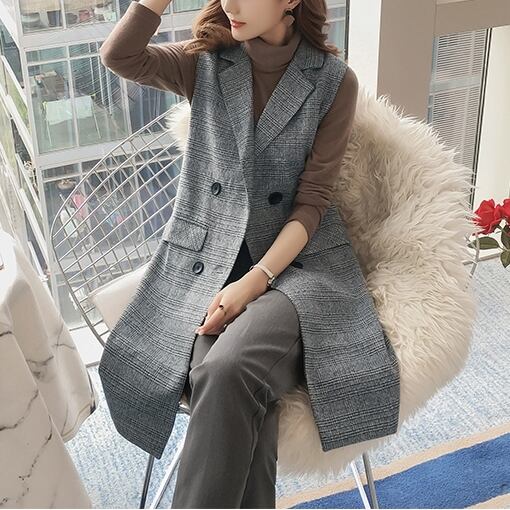 ● プラスサイズ ノースリーブ 春 秋 チェック柄ジャケットです。