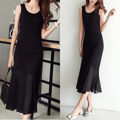 【 S 〜 3XL 】大きいサイズ レディース 春 夏 スリム ボトミング ブラック ノースリーブ パーティー ドレス 3l 2l xl 144