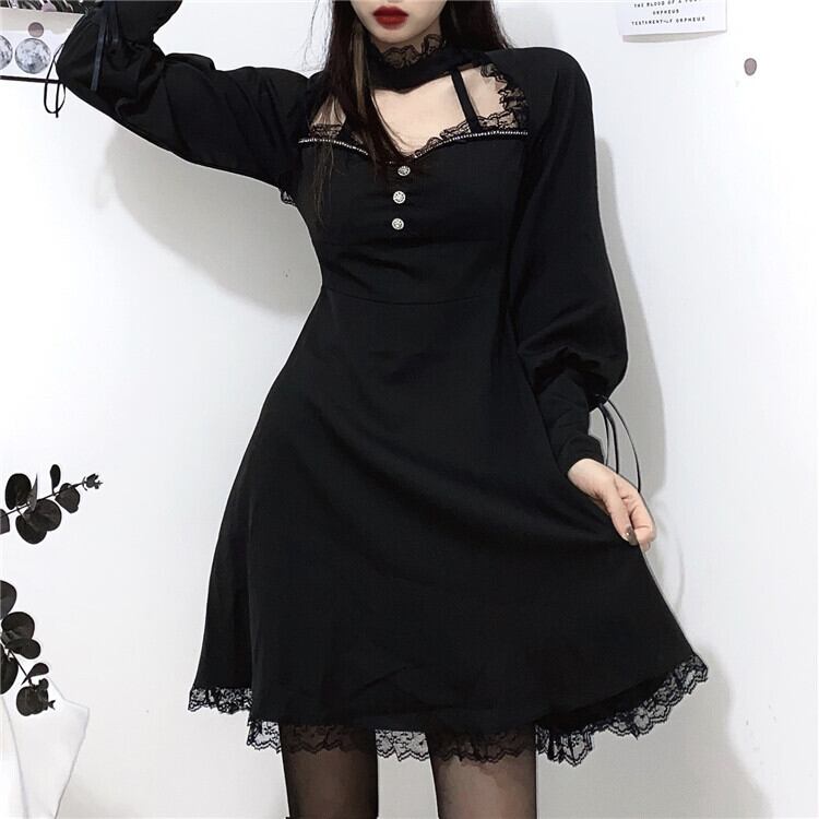 【 M 〜 4XL 】 大きいサイズ レディース 春 秋 レトロ レース ステッチ ウエスタン スタイル ブラック ドレス 4l 3l 2l xl 146