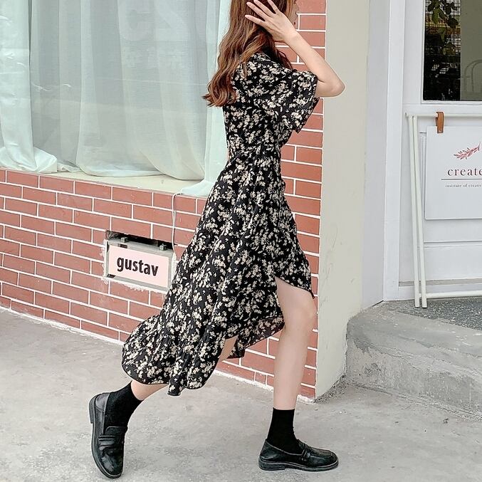 ● フローラル 半袖 カジュアル ロング 夏 ドレスワンピースです。