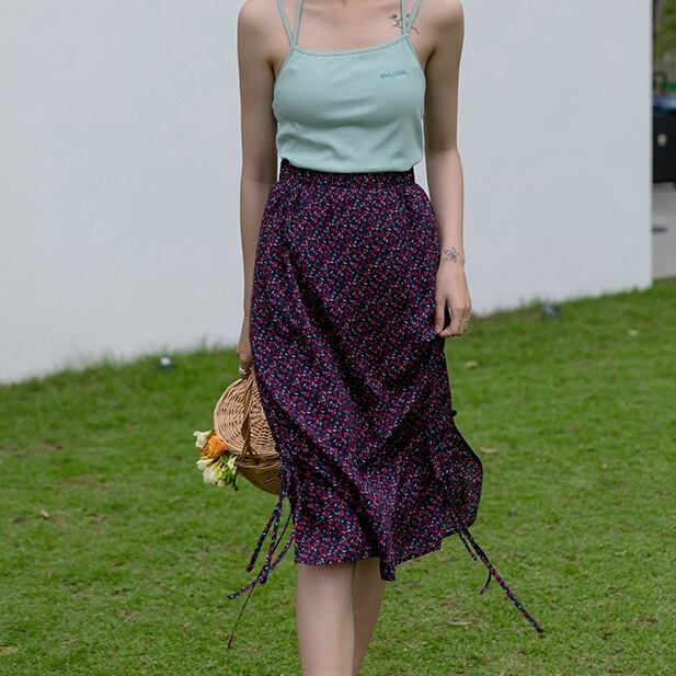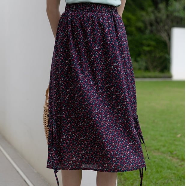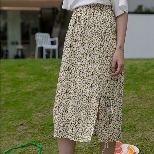 【 S 〜 M 】大きいサイズ レディース レトロ フローラル 花柄 ミドル丈 ハイウエスト 春 夏 スカート 152