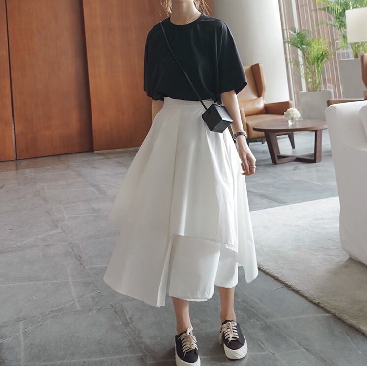 【 S 〜 L 】 大きいサイズ レディース Tシャツ + スカート ツーピースセット サマー 夏 ワイルド カジュアル 156