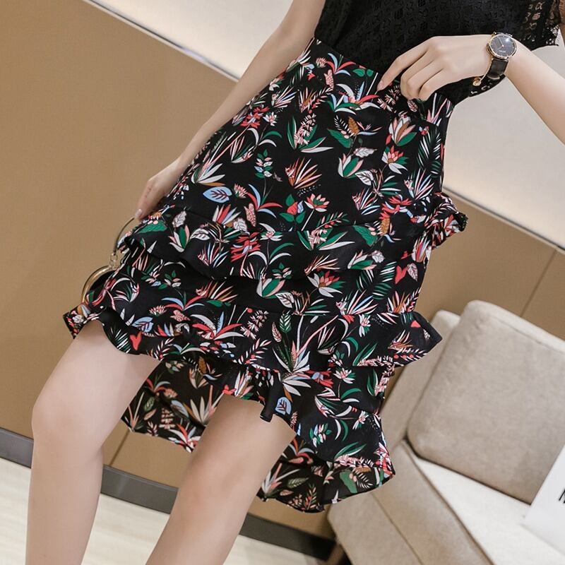 【 S 〜 2XL 】 大きいサイズ レディース 花柄 フローラル ハイウエスト スリム カジュアル 不規則 スカート 2xl xl 157