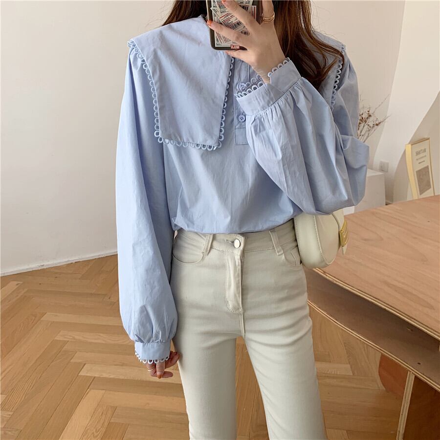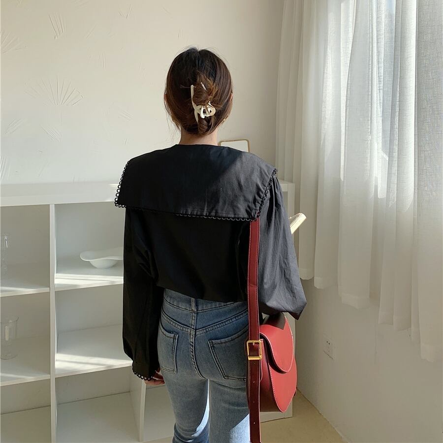 ● 大きなラグシングル ルーズ カジュアル ロング シャツブラウスです。