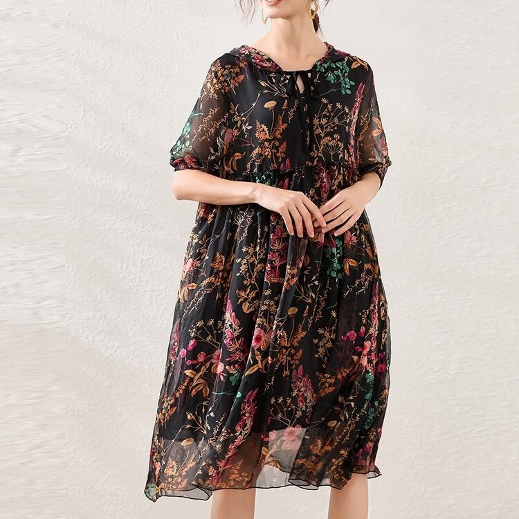 【 XL 〜 4XL 】 大きいサイズ レディース 花柄 半袖 フード付き ビッグスイング オーバー サマー パーカー ワンピース ドレス 4l 3l 2l 167