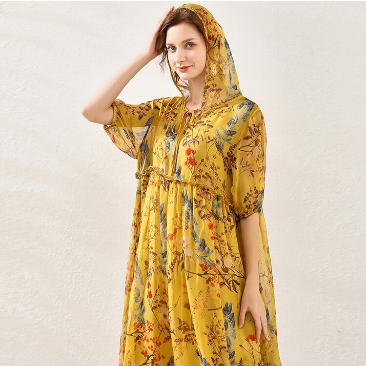 ● プラスサイズ 花柄 フード付き サマー ワンピースです。