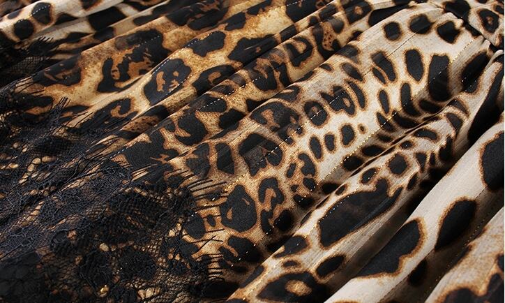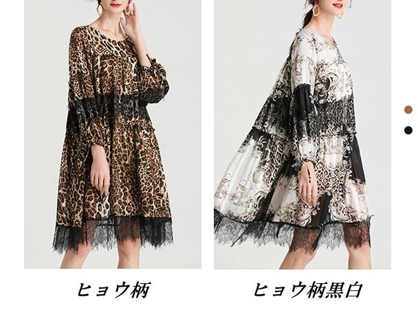 【 XL 〜 4XL 】 大きいサイズ レディース 春 夏 長袖 レース ステッチ ミドル丈 カジュアル ヒョウ柄 ワンピース 4l 3l 2l 177
