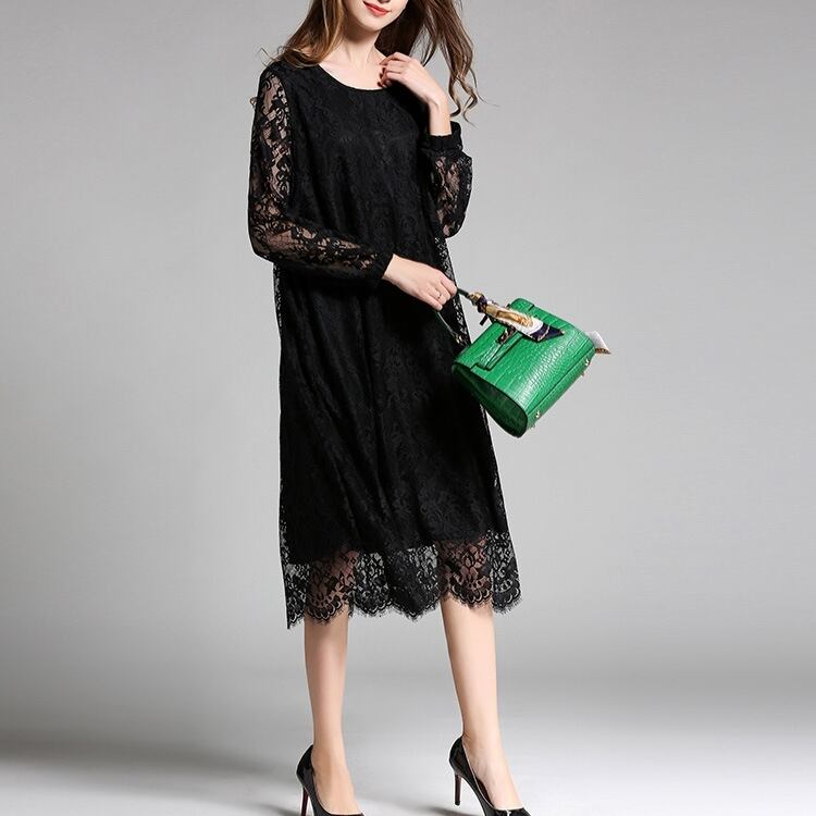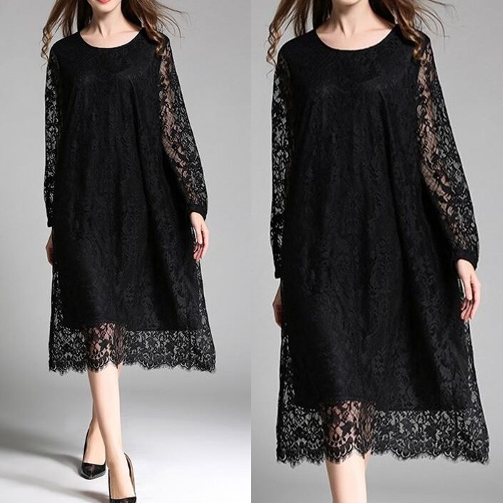 【 XL 〜 4XL 】 大きいサイズ レディース ミドル丈 ルーズ ゆったり レース 長袖 ドレス 4l 3l 2l 177