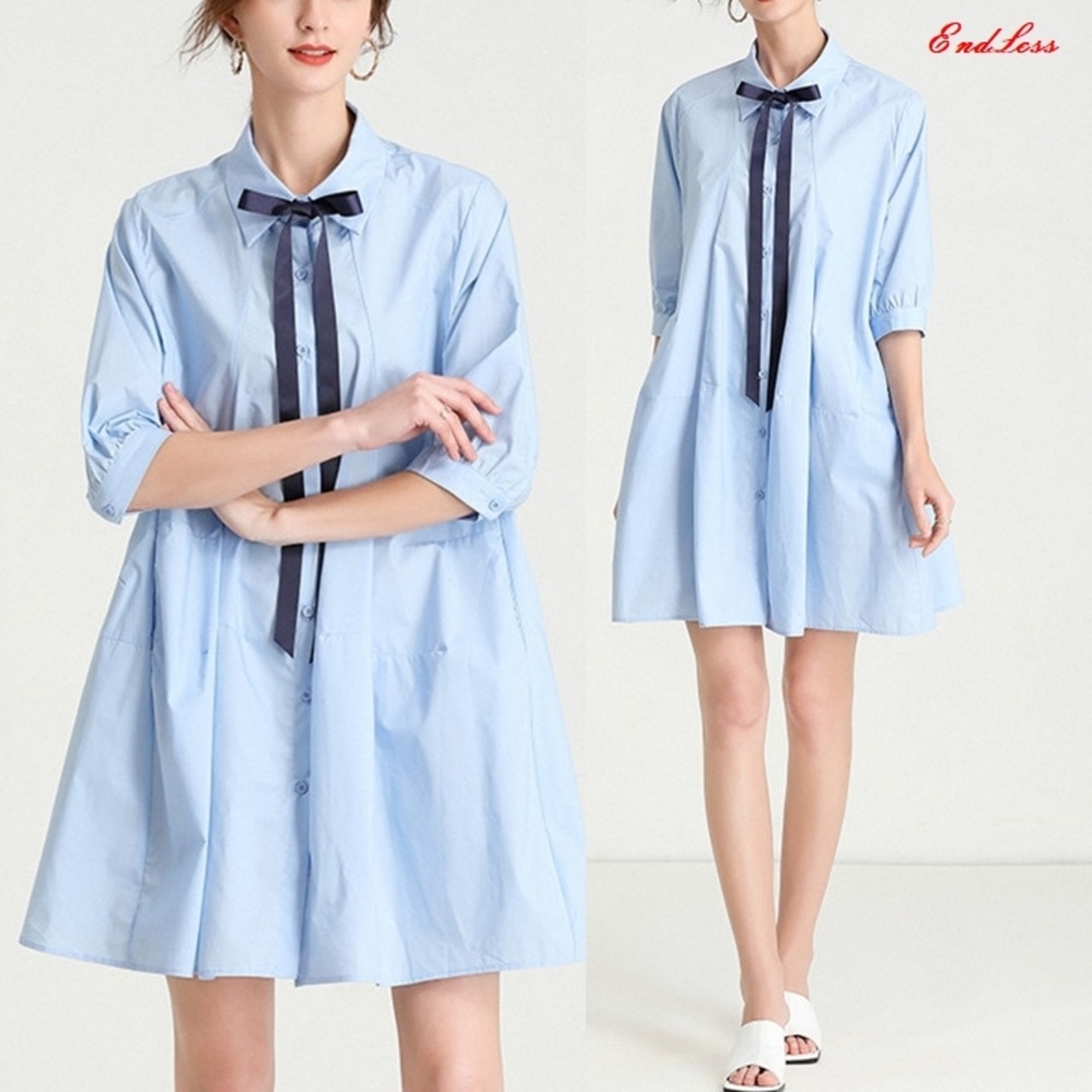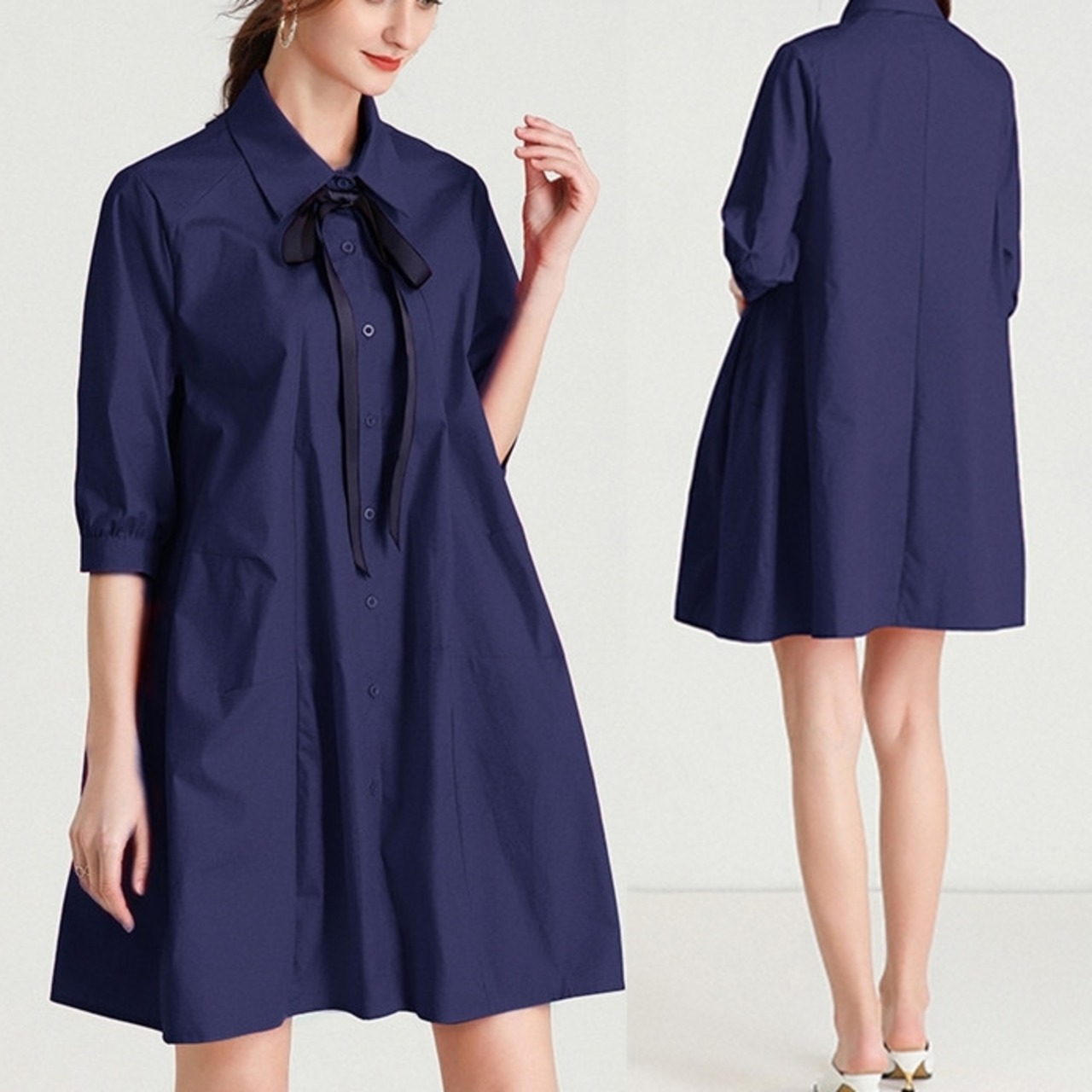● プラスサイズ ルーズ ファッション 半袖 シャツ ワンピースです。