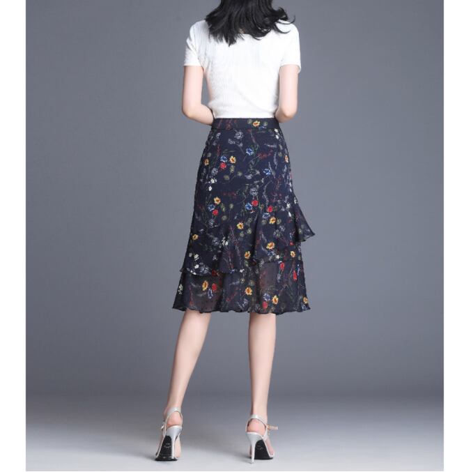 【 M 〜 4XL 】 大きいサイズ レディース 花柄 プリント 夏 サマー 不規則 Aライン フリル プリーツ スカート 4l 3l 2l 194