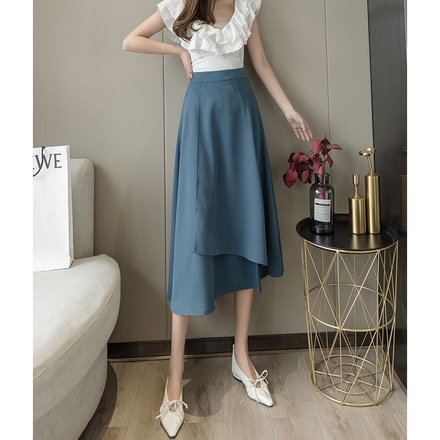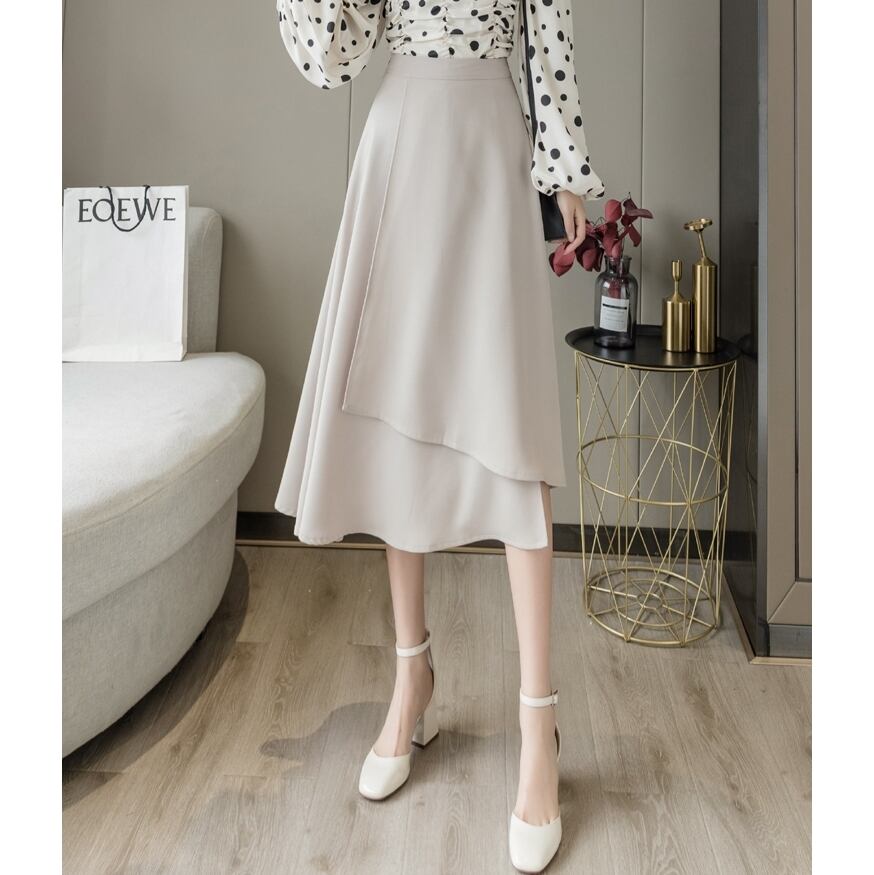 【 S 〜 XL 】大きいサイズ レディース ハイウエスト ソリッドカラー ヴィンテージ 春 夏 ミディアム スカート xl 210