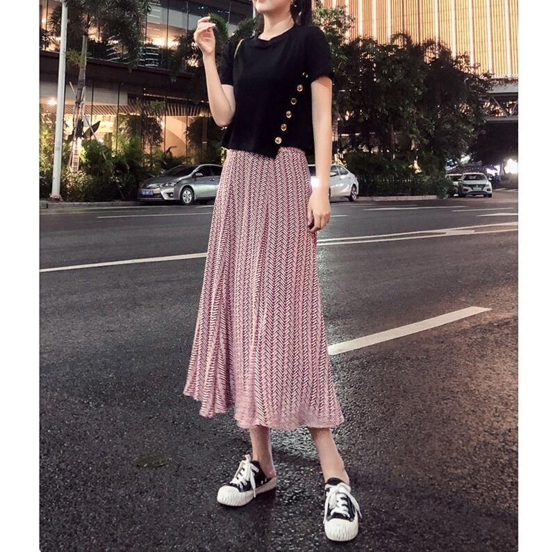 【 M 〜 3XL 】 大きいサイズ レディース 半袖 ストライプ 夏 サマー 2ピース トップス スカート スーツ ドレス 3l 2l 211