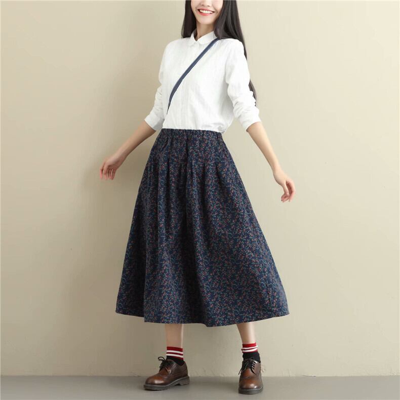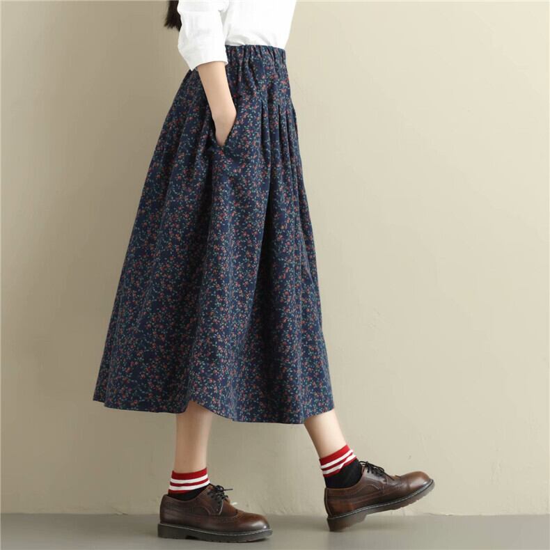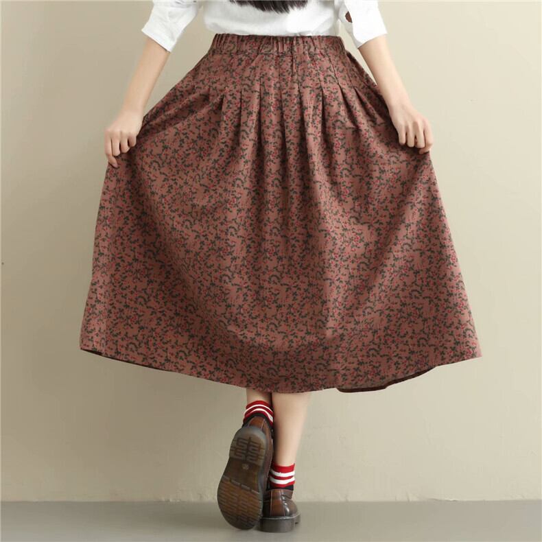 【 ワンサイズ 】 大きいサイズ レディース 花柄 フローラル 春 秋 スイング ヴィンテージ ゆったり コットン スカート 212