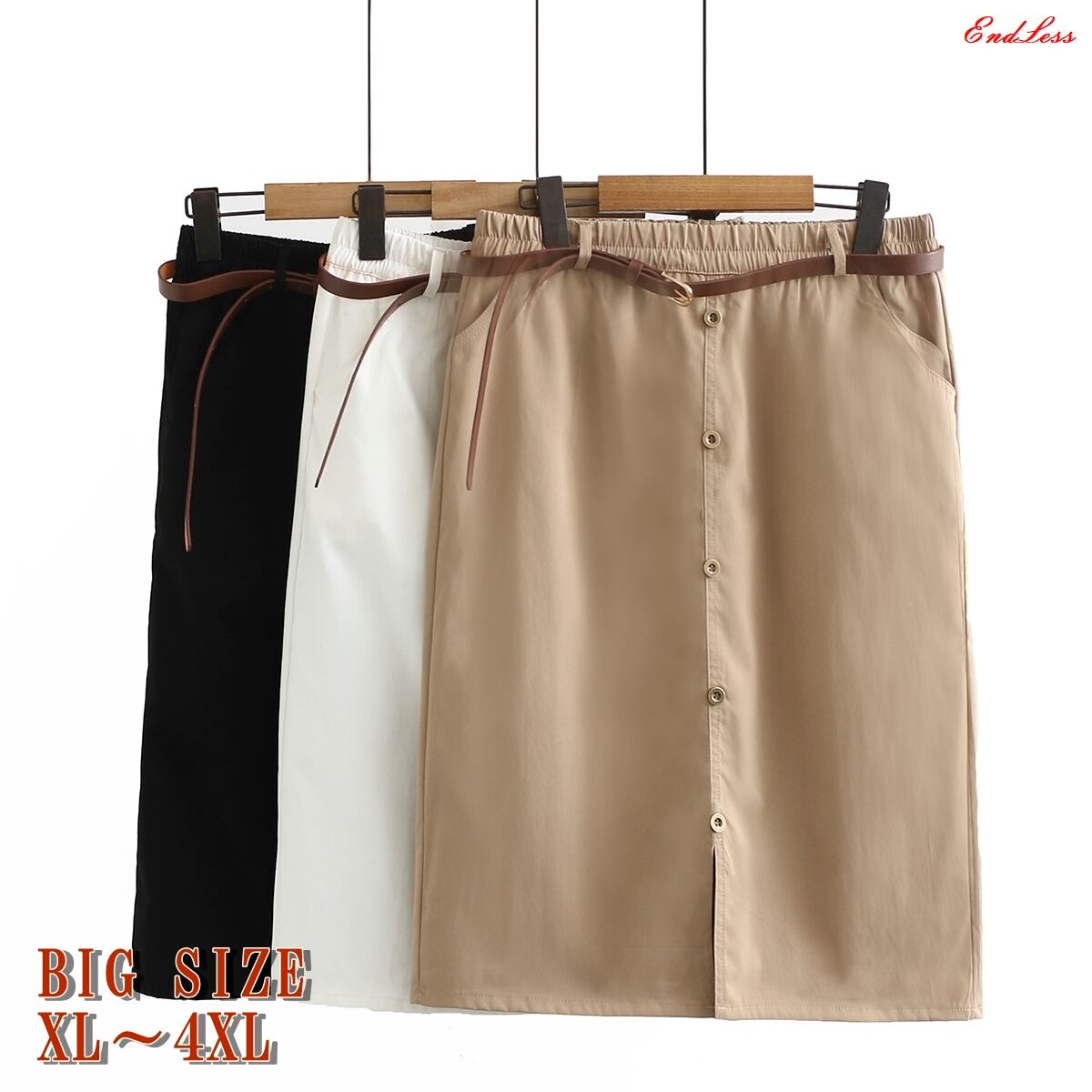 【 XL 〜 4XL 】 大きいサイズ レディース ゆったり ウエスト ベルト ボタン カジュアル 夏 サマー スカート 4l 3l 2l 223