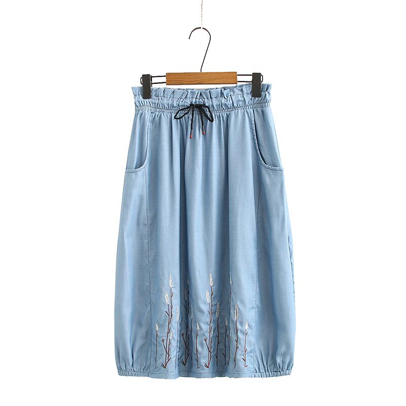 ● プラスサイズ 花柄 デニム ランタン スカートです。