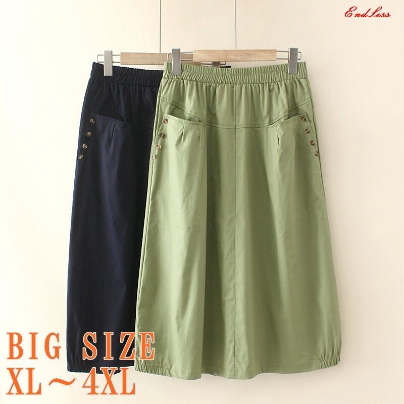 【 XL 〜 4XL 】 大きいサイズ レディース 夏 ポケット ボタン ゆったり ウエスト カジュアル スイング スカート 4l 3l 2l 237