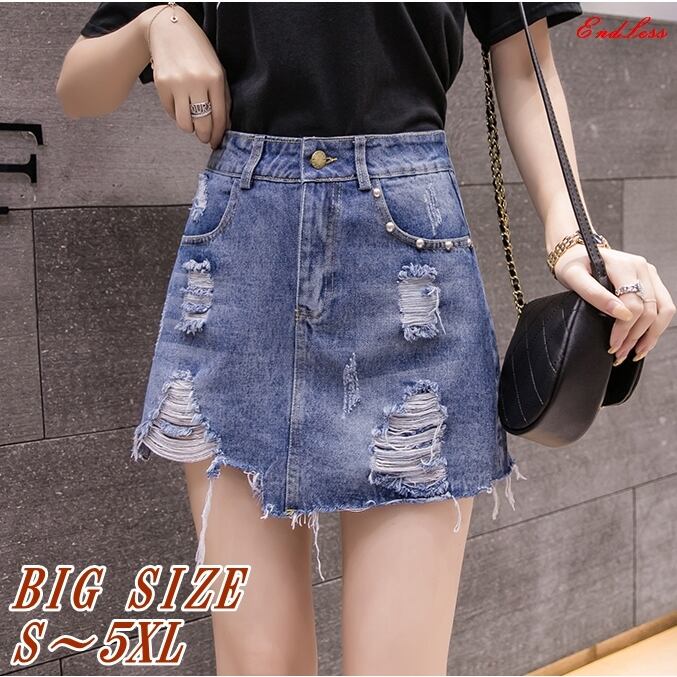 【 S 〜 5XL 】 大きいサイズ レディース 穴あき ダメージ バック ヒップ 春 秋 ミニ デニム スカート 5l 4l 3l 254