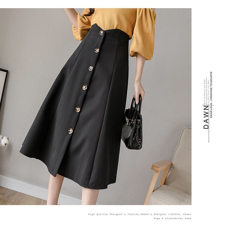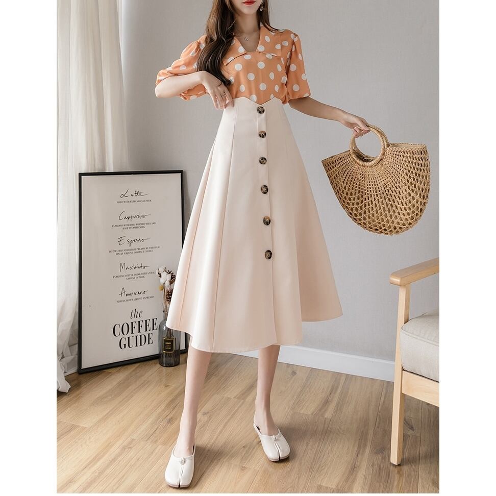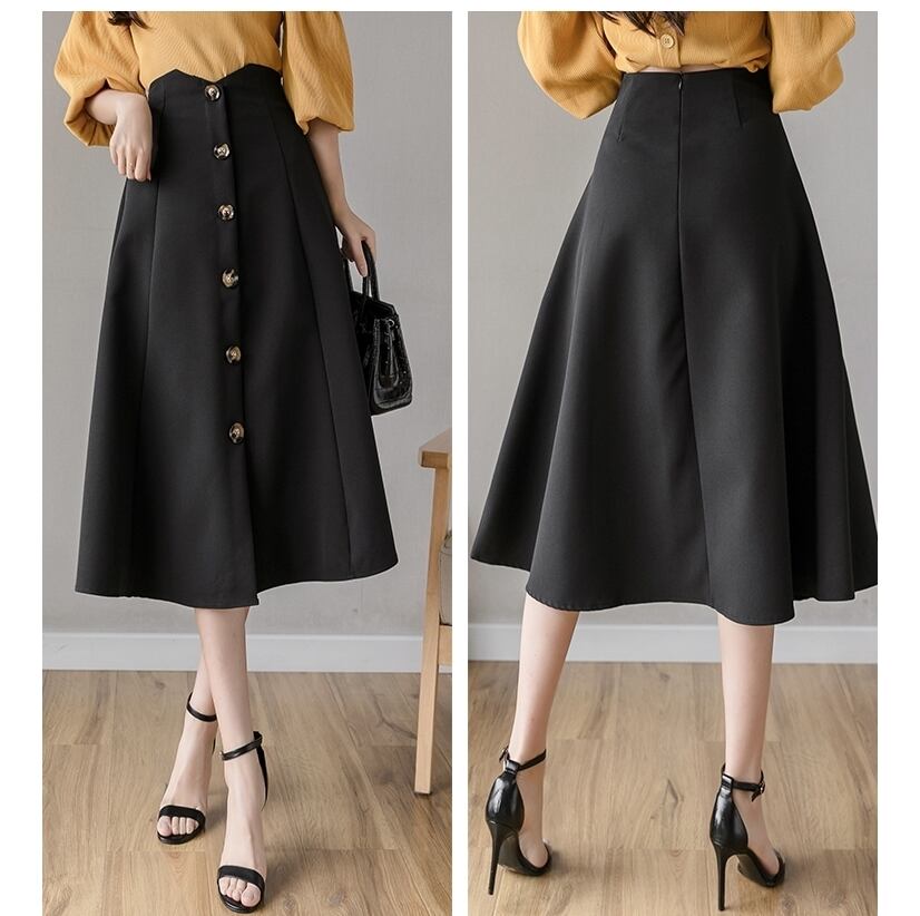 【 S 〜 5XL 】 大きいサイズ レディース 春 秋 ハイウエスト スイング ミディアム丈 Aライン ボタン スカート 5l 4l 3l 259