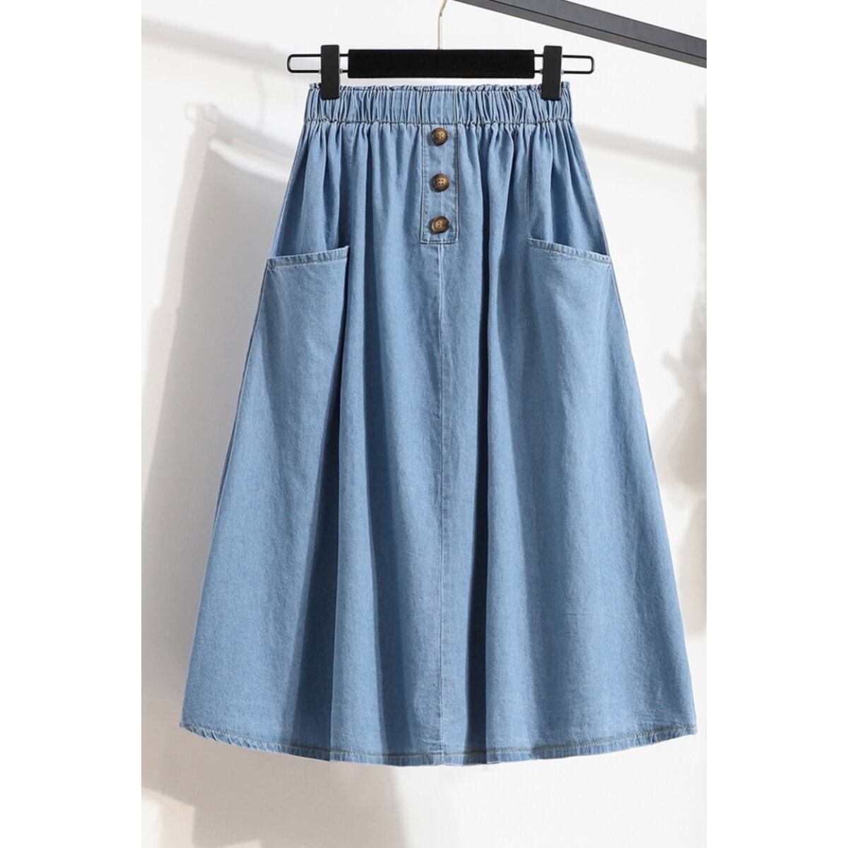【 M 〜 3XL 】 大きいサイズ レディース ゆったり ハイウエスト ポケット ミディ丈 デニム ボタン スカート 3l 2l 279