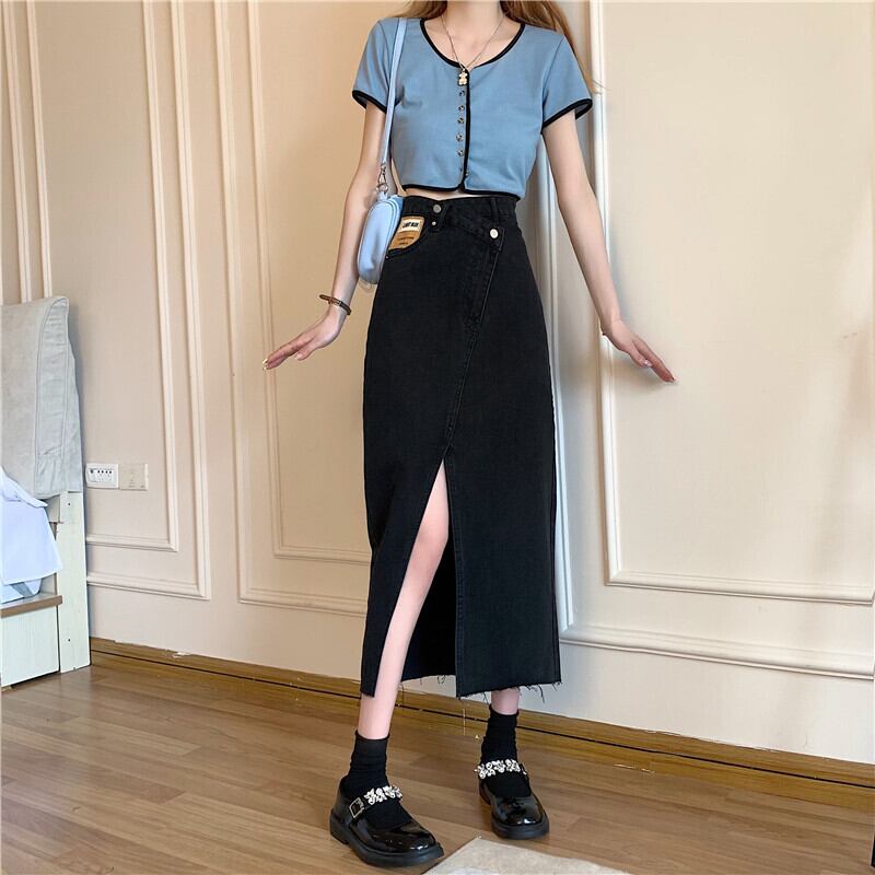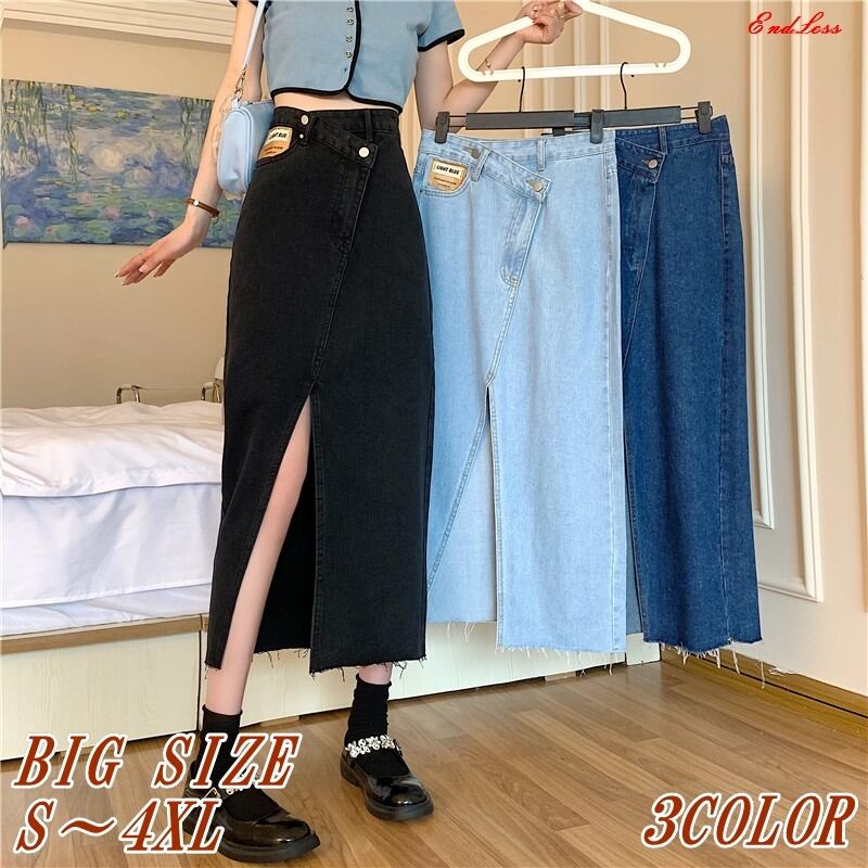 【 S 〜 4XL 】 大きいサイズ レディース サイドオープン ミディアム丈 サマー 夏 デニム スカート 4xl 3xl 2xl 288