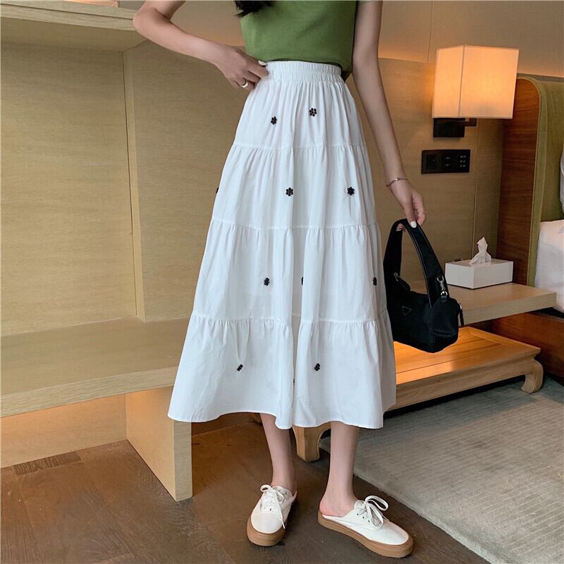 【 L 〜 4XL 】 大きいサイズ レディース ビーズ ハイウエスト ゆったり カジュアル ミディアム スカート 4l 3xl 2xl 310