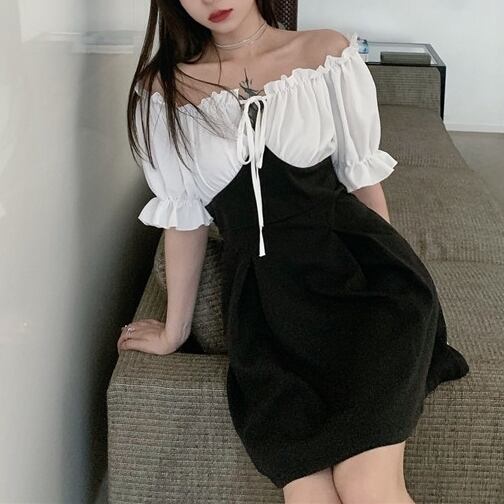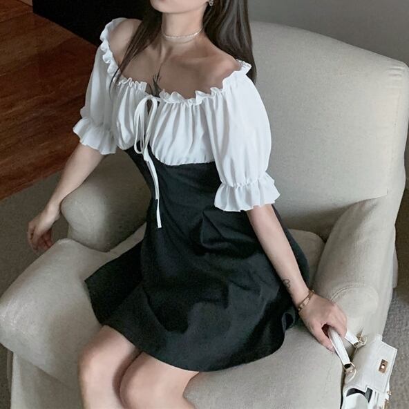 【 L 〜 4XL 】 大きいサイズ レディース ブラック ホワイト セクシー ショルダー Aライン ミディアム 半袖 ワンピース ドレス 4l 3xl 2xl 316