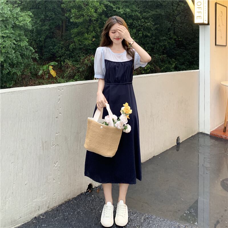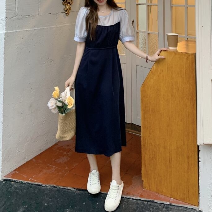 【 M 〜 4XL 】 大きいサイズ レディース ヴィンテージ ステッチ 半袖 ワンピース ハイウエスト ブラック ステッチ ドレス 4l 3xl 2xl 323