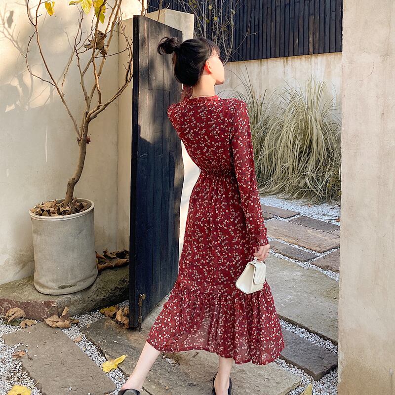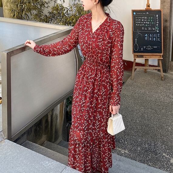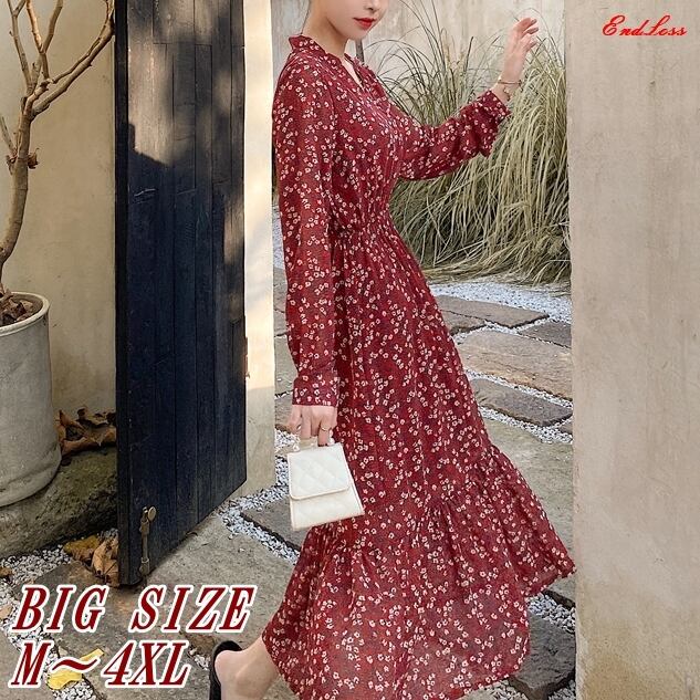【 M 〜 4XL 】 大きいサイズ レディース スリム スキニー 花柄 ロング スカート ドレス Vネック 長袖 ワンピース 4l 3xl 2xl 331