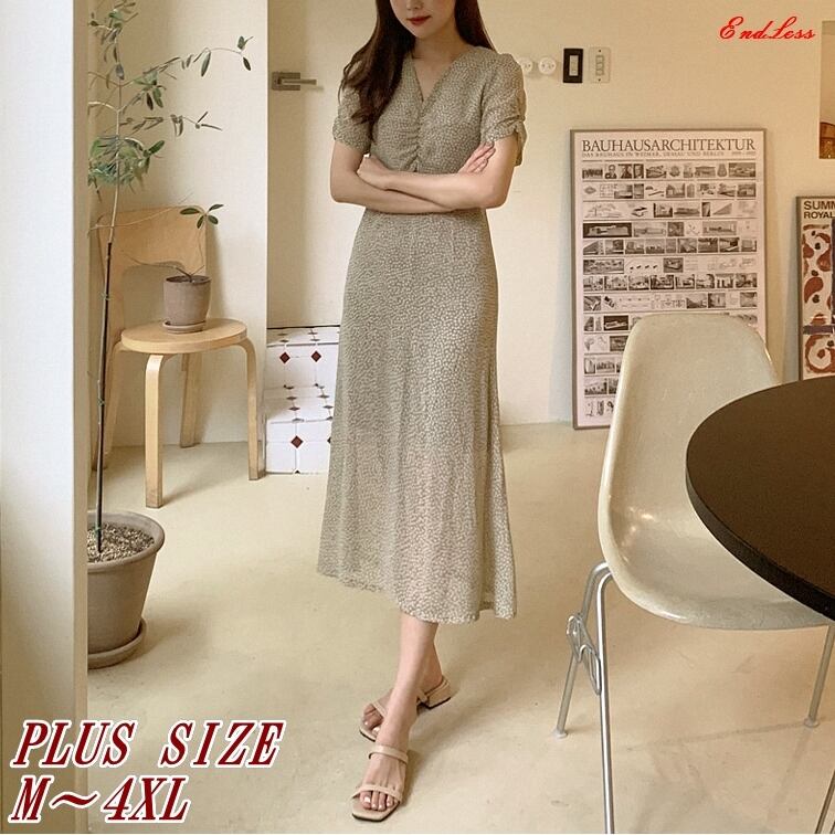 ● プラスサイズ M~4XL 花柄 膝丈 エレガント ドレスです。