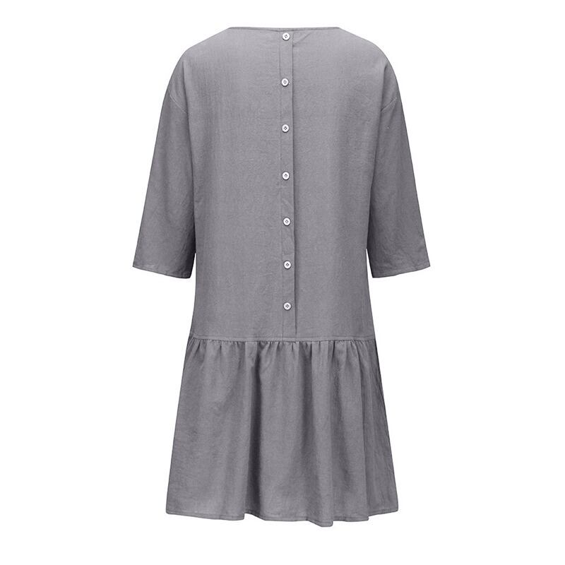 【 S 〜 XL 】 大きいサイズ レディース カジュアル ルース スウイング 3/4スリーブ フリル コットン ゆったり ミニ ドレス 5l 4l 3l 2l 353