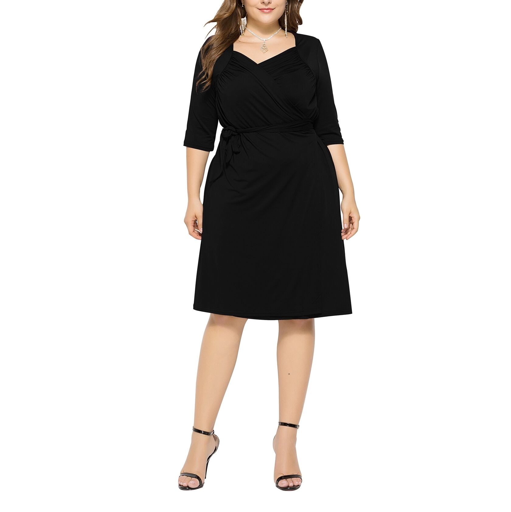 【 L 〜 4XL 】 大きいサイズ レディース Vネック 半袖 サマー ドレス マーティー セクシー 膝丈 ゆったり プリーツ スカート 4l 3l 2l 360