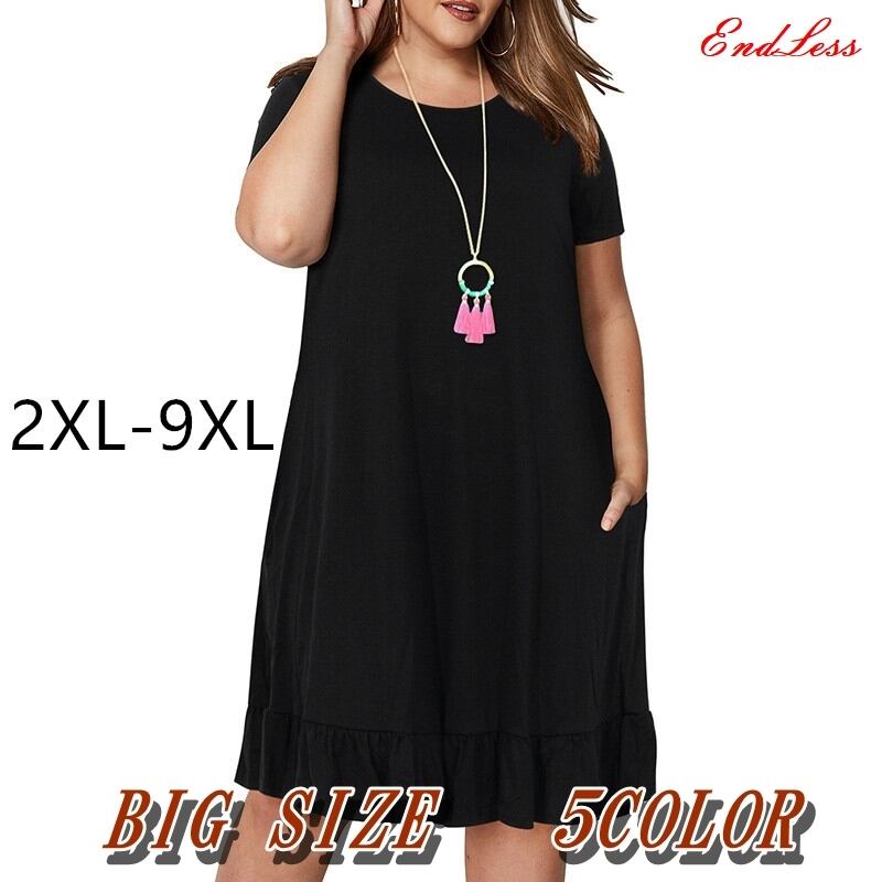 【 2XL 〜 9XL 】 大きいサイズ レディース ビッグ サマー 半袖 ワンピース シャツ ミドル丈 フリル スカート ゆったり タイプ 9l 8l 7l 6l 5l 4l 361