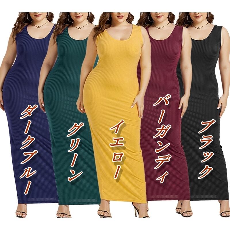 S 〜 5XL 大きい サイズ レディース ストレッチ ロング ボディコン ドレス ノースリブ ボートネック サマー ワンピース 結婚式 通販 XL 4l 3l 378