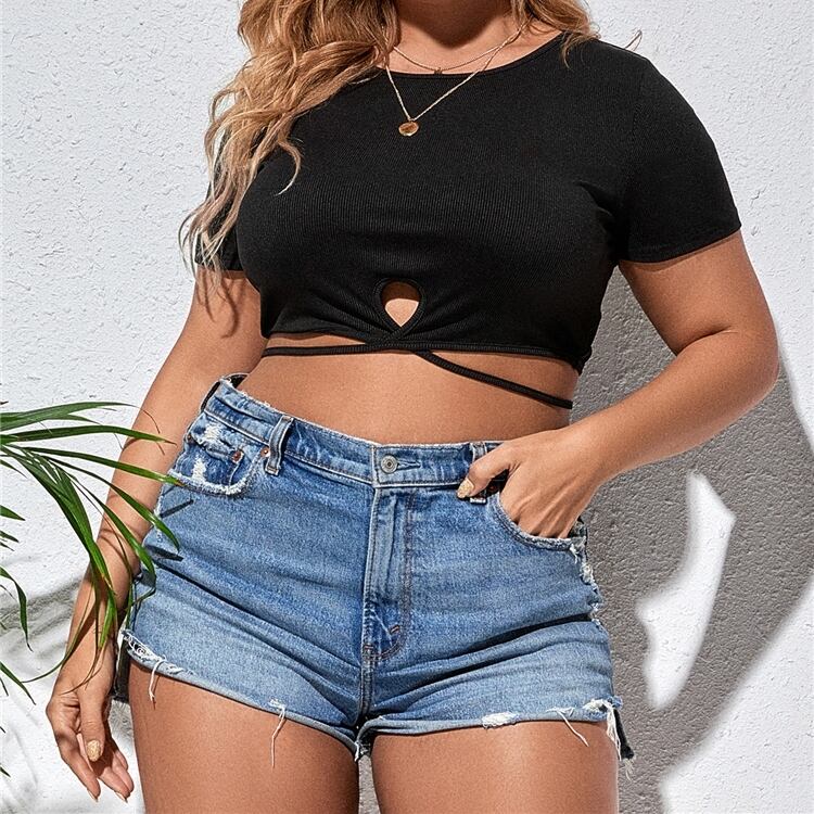 XL 〜 4XL 大きいサイズ レディース ビッグヤード サマー t シャツ ショート セクシー トップス カジュアル ブラック 半袖 ショート スタイル プラスサイズ ラージサイズ ファッション 夏 WOMEN SUMMER t SHIRT SEXY TOPS 通販 XL 4l 3l 2l 393