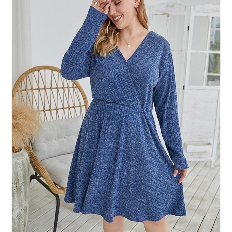 XL 〜 4XL 大きいサイズ レディース Vネック 長袖 ゆったり ルーズ カジュアル 秋 ドレス ヴィンテージ ワンピース ビッグサイズ プラスサイズ ファッション ブラック ブルー loose dresses plus size Autumn women casual dress 通販 XL 3l 2l 407