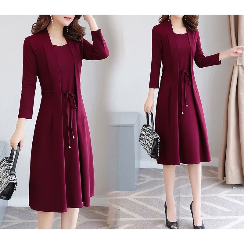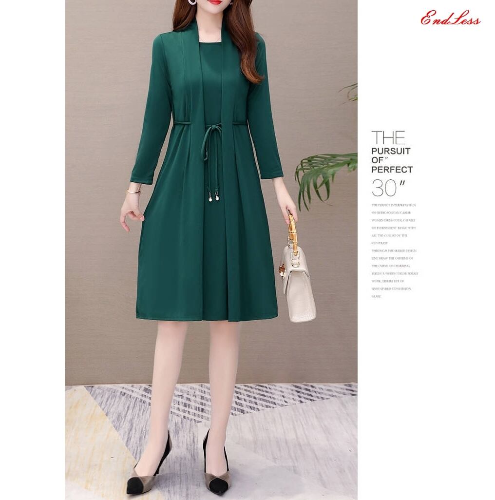 ● プラスサイズ 長袖 ミディアムスカート ドレスです。