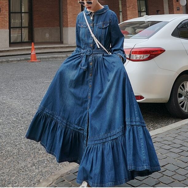 大きい サイズ レディース 長袖 ロング レトロ デニム ドレス ドレスコード 結婚式 ワンピース ファッション お気に入り アイテム 通販 ショップ 3l 2l xl 431