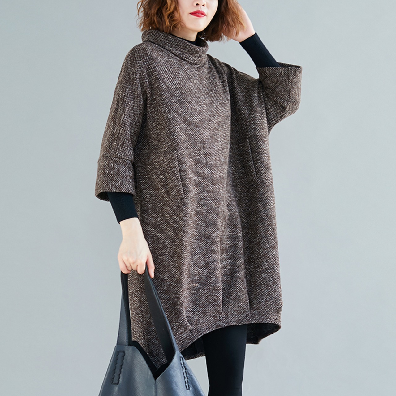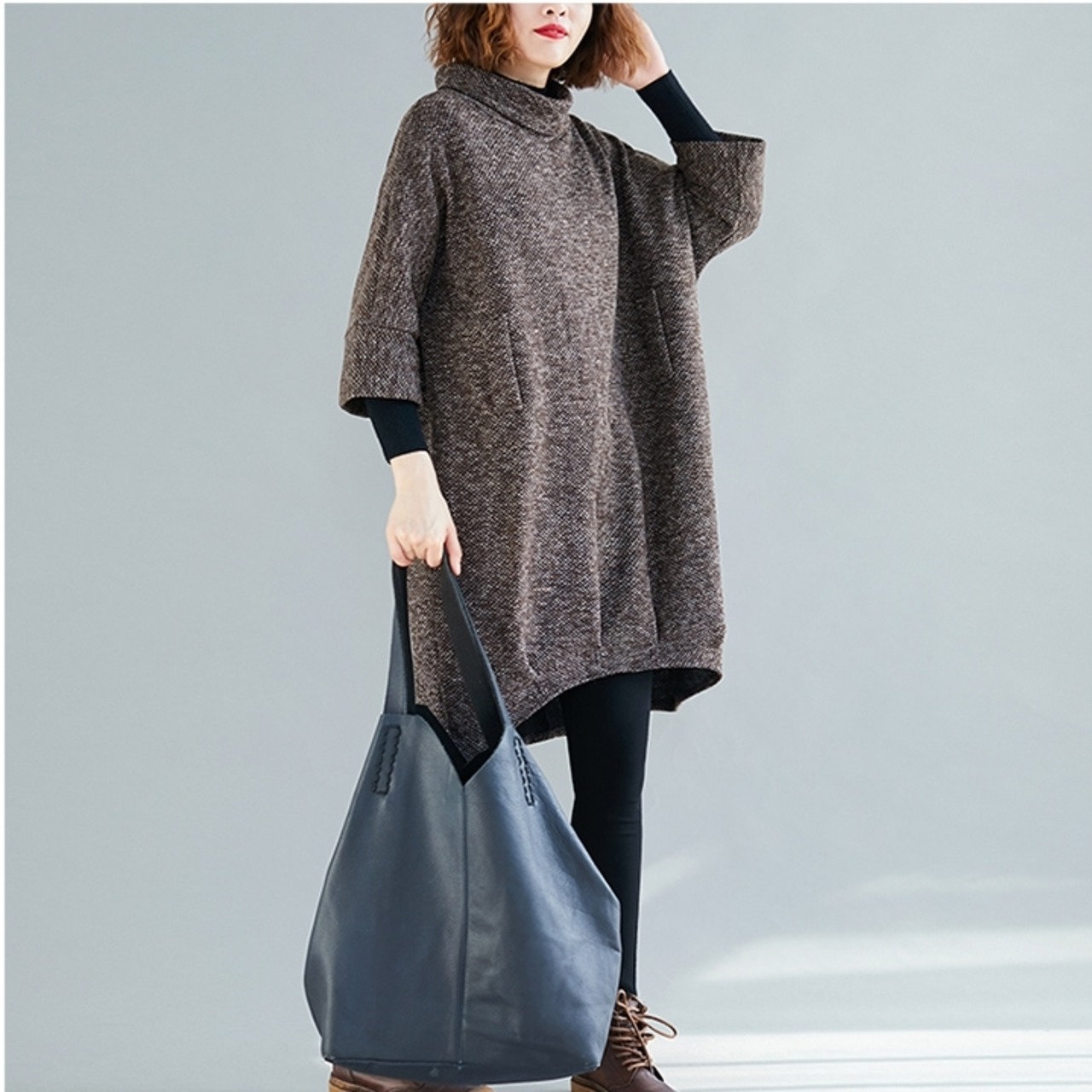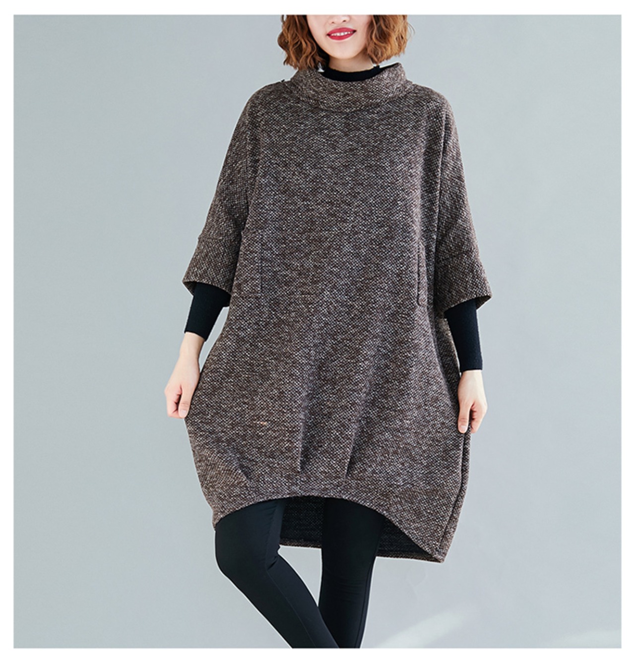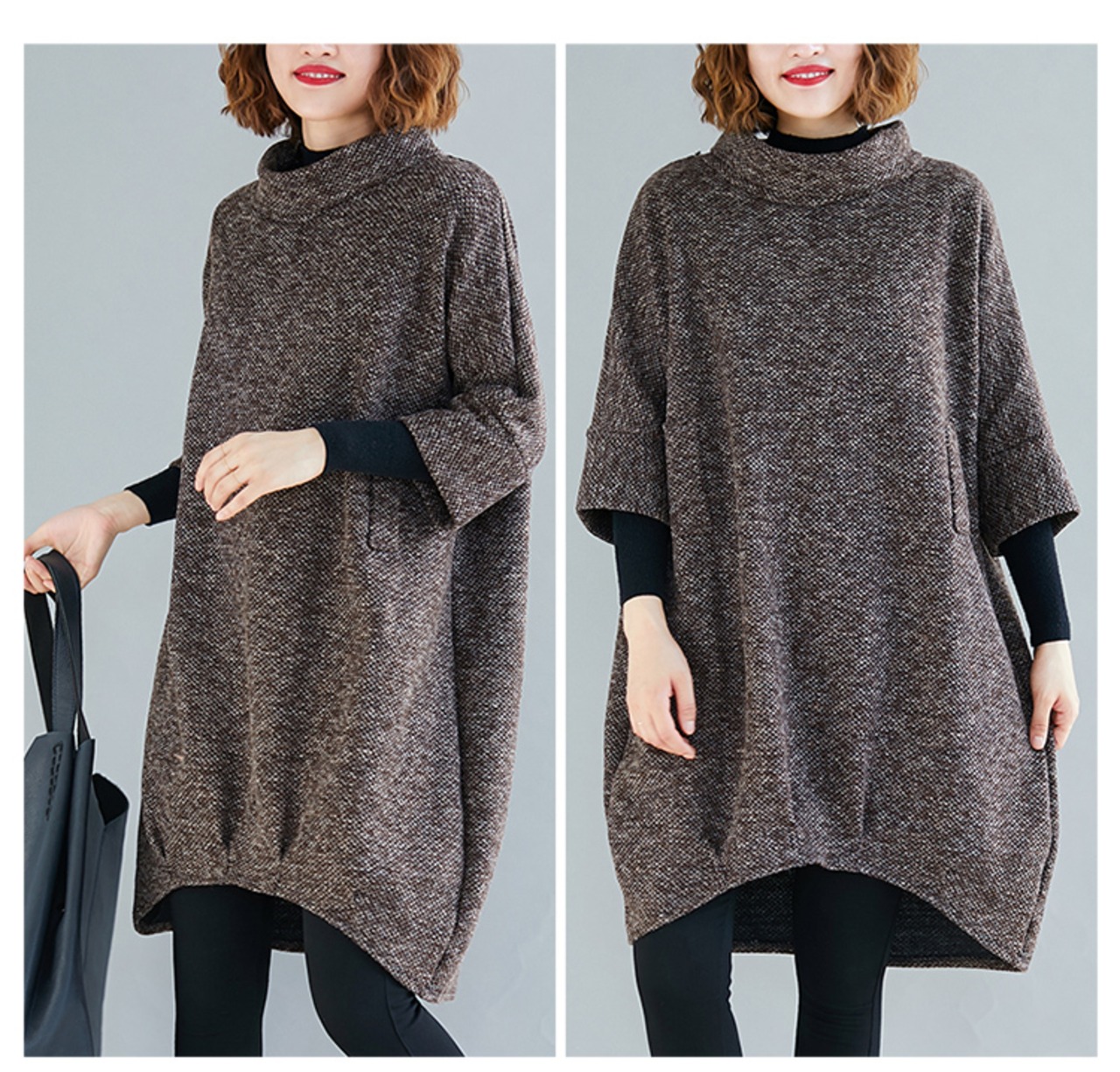 大きい サイズ レディース 長袖 タートル ネック ゆったり ルーズ ドレス コート ワンピース トップス コーデ レトロ 大人 女子 カジュアル オフィス ファッション お気に入り アイテム 通販 ショップ 443