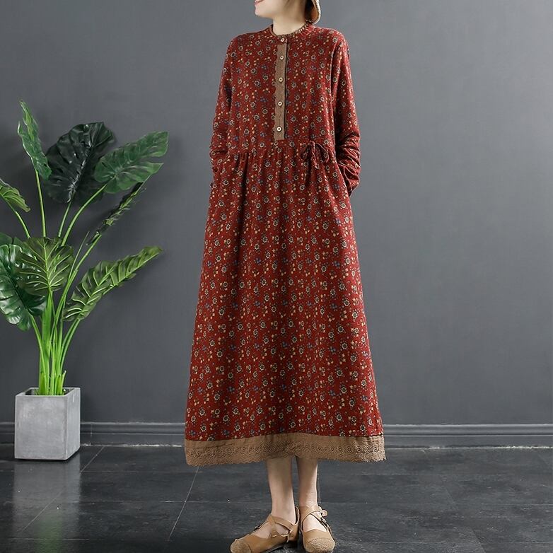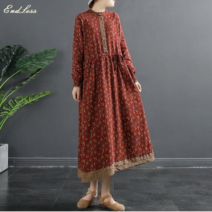 大きい サイズ レディース エスニック ルーズ ゆったり 花柄 ワンピース レース コーデ レトロ 大人 女子 カジュアル オフィス ファッション お気に入り アイテム 通販 ショップ 2l 444