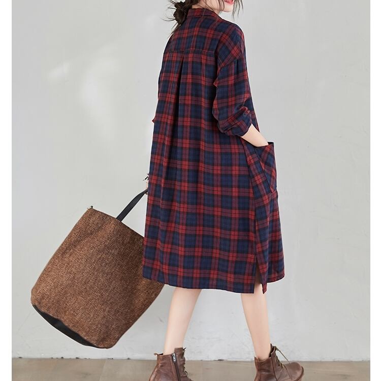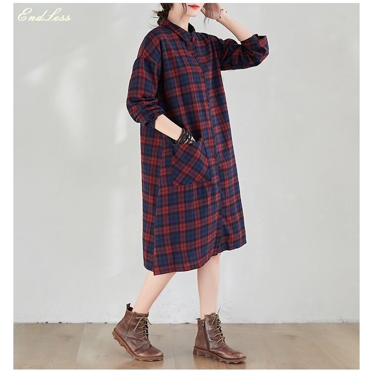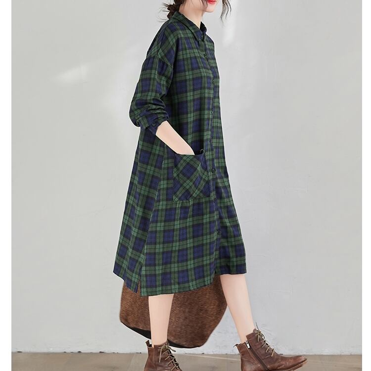 大きい サイズ レディース 長袖 チェック柄 カジュアル ロング シャツ ワンピース ルーズ ゆったり ウエストカバー 秋 コーデ カジュアル ファッション お気に入り アイテム 通販 446