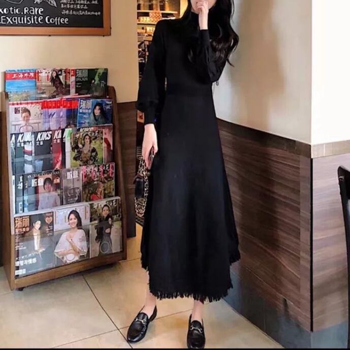 大きい サイズ レディース タートルネック スリムウエスト ニット スカート ドレス コーデ レトロ 大人 女子 カジュアル オフィス ファッション お気に入り アイテム 通販 ショップ 449