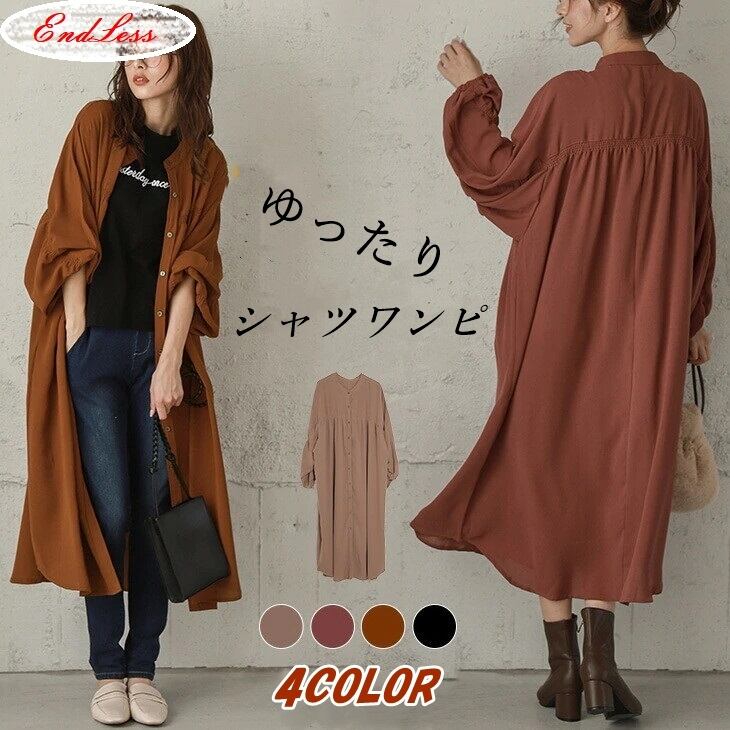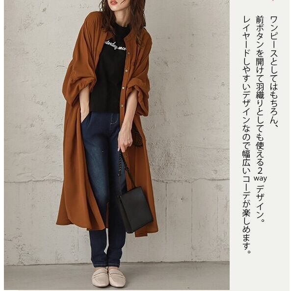 大きい サイズ レディース 長袖 ロング シャツ ワンピース コート ルーズ ゆったり ウエストカバー 秋 コーデ カジュアル ファッション お気に入り アイテム 通販 450