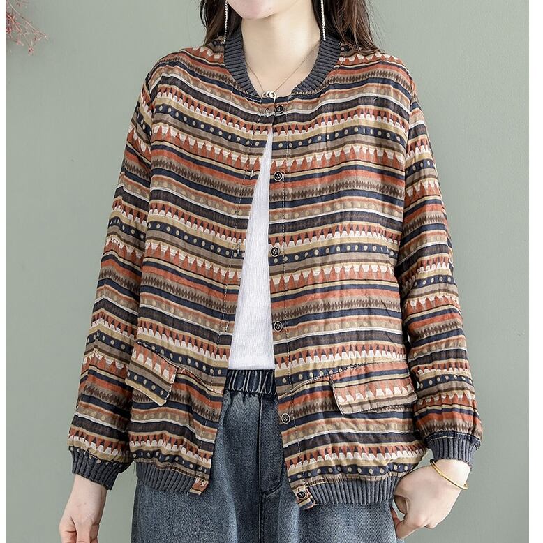 ● カジュアル コットン ショート ストライプ ジャケット コートです。