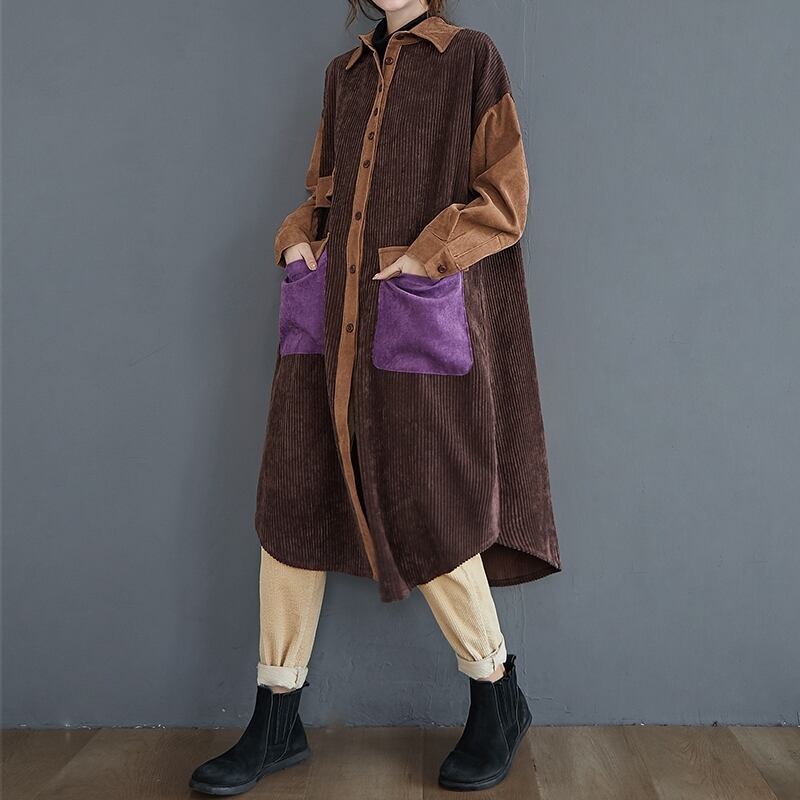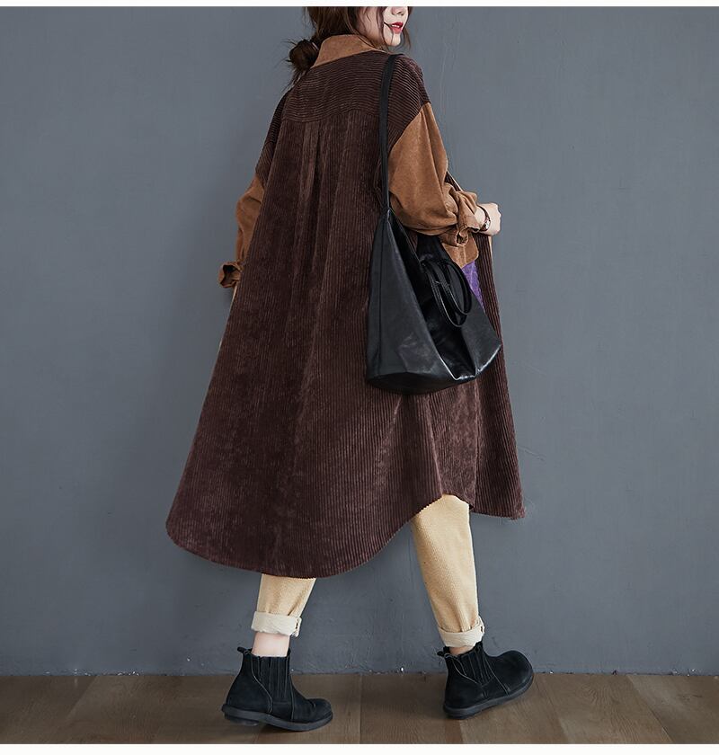 レトロ ヴィンテージ スエード ロング コート ルーズ ボタン コーデ 大きい サイズ レディース セットアップ アウター カジュアル 大人 女子 お気に入りブラウン WOMEN 通販 463