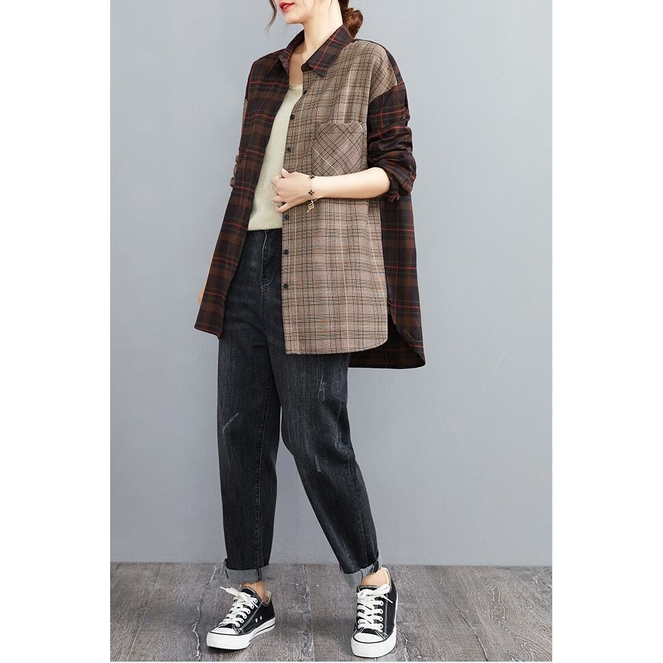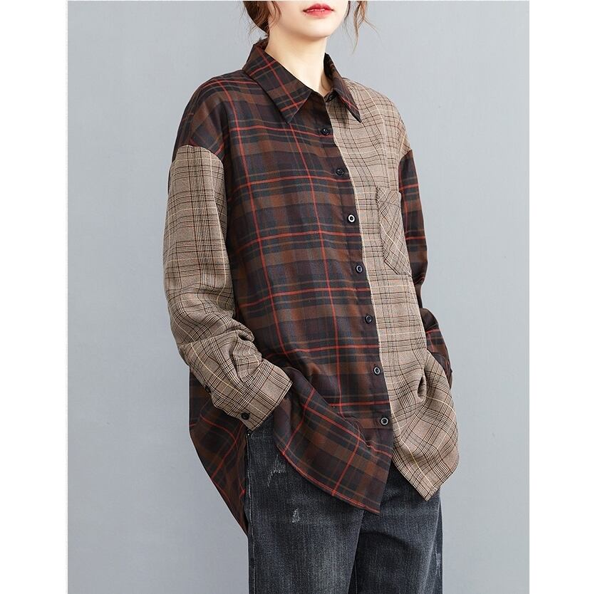チェック柄 ツートーン 長袖 カジュアル シャツ トップス コーデ 大きい サイズ レディース デニム コーデ セットアップ アウター カジュアル 大人 女子 お気に入り 通販 WOMEN 464