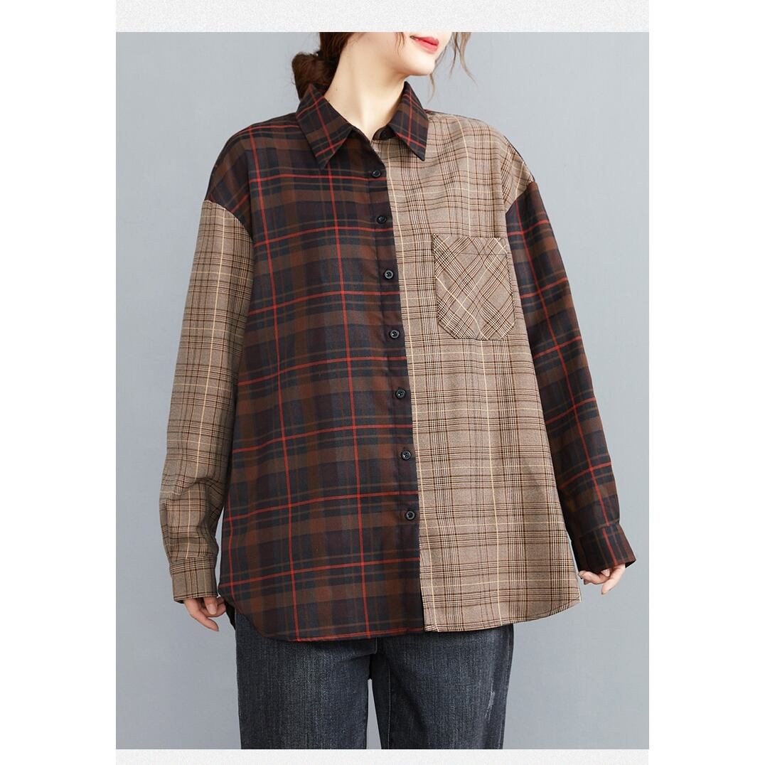● ゆったり大きな 長袖 チェック柄 ツートーン カジュアルシャツです。