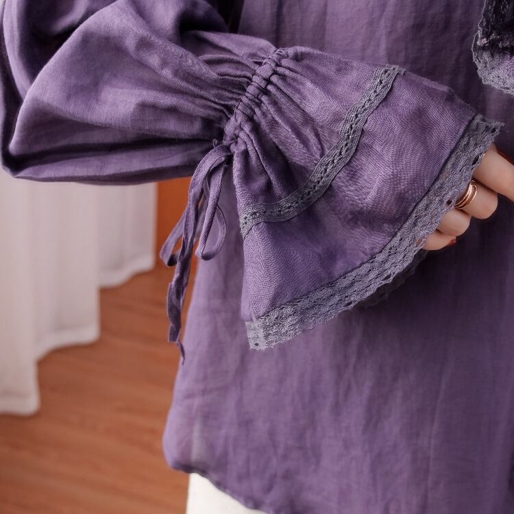 ルーズ ゆったり Vネック コットン シャツ トップス 大きい サイズ レディース パープル コーデ セットアップ パーティー カジュアル 大人 女子 お気に入り 通販 WOMEN 473