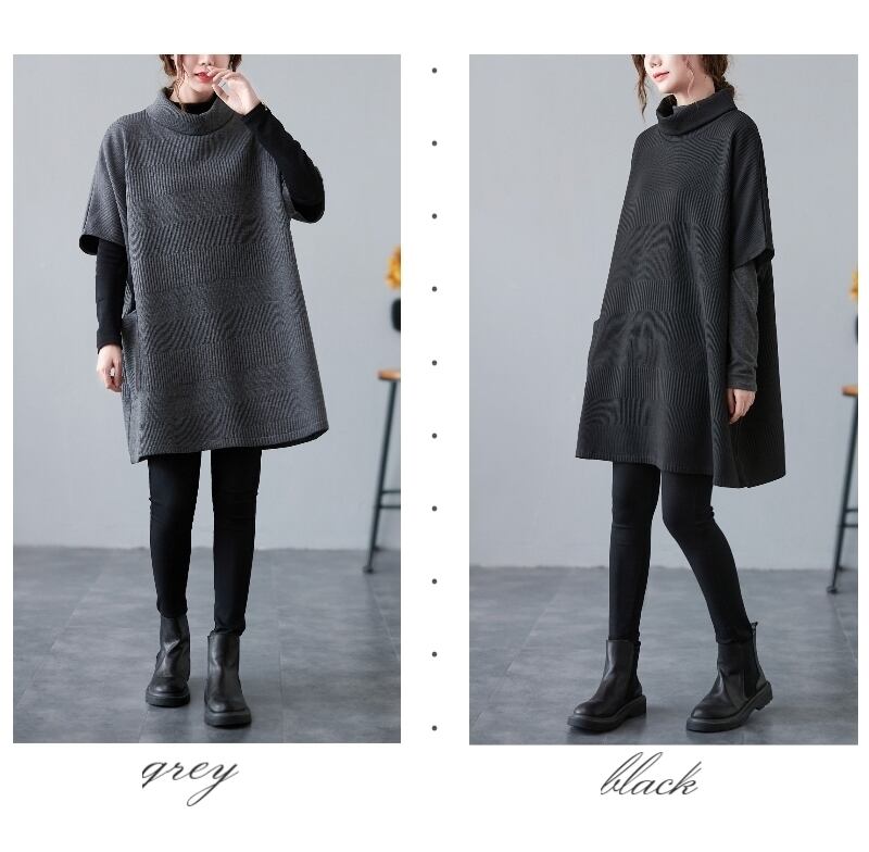 タートルネック 半袖 ニット 重ね着 コート 大きい サイズ レディース セットアップ アウター カジュアル 大人 かわいい 女子 お気に入り グレー ブラック WOMEN 通販 474